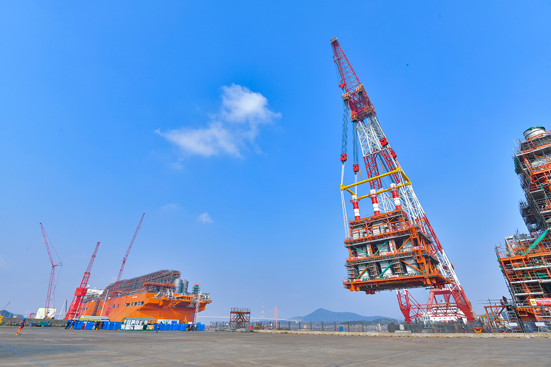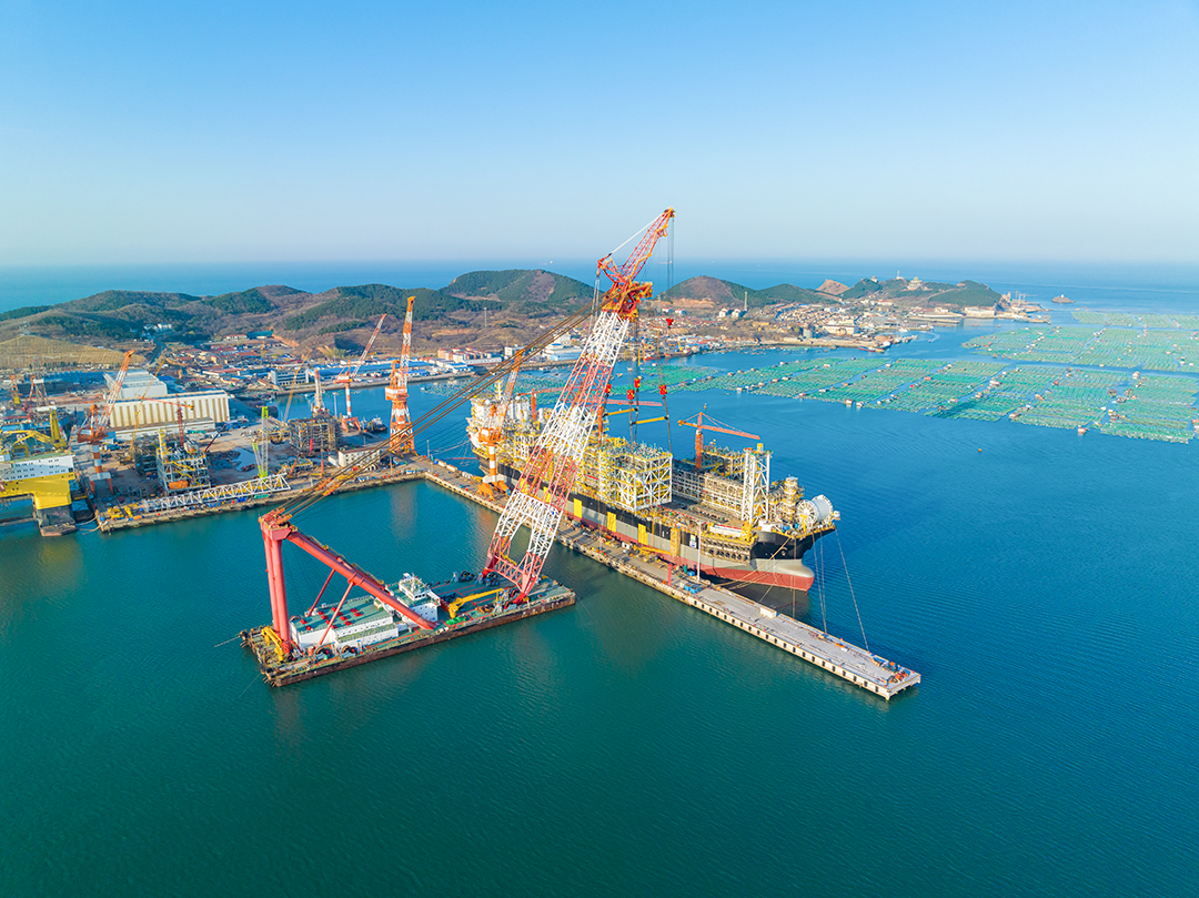 巨力索具5000T吊梁模式机械助力我國自强自立加工制作的很大重量、很大储宇量的最新科技发展海上浮式液化石油气自然美气原产零件NGUYA FLNG上面模块电源起重吊装成功,为随后世界任务奠基石了坚硬本质。