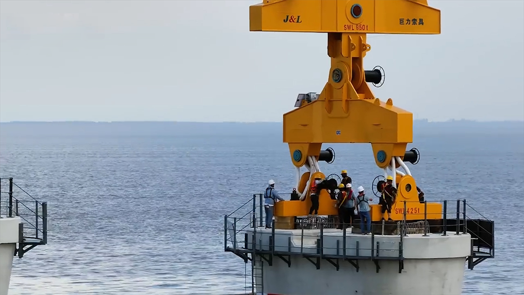巨力索具箱梁吊具全过程可以保障国家首坐市域(郊)道轨跨海高架桥——象山线跨海高架桥,重1700吨的现浇混凝土箱梁获得安装。